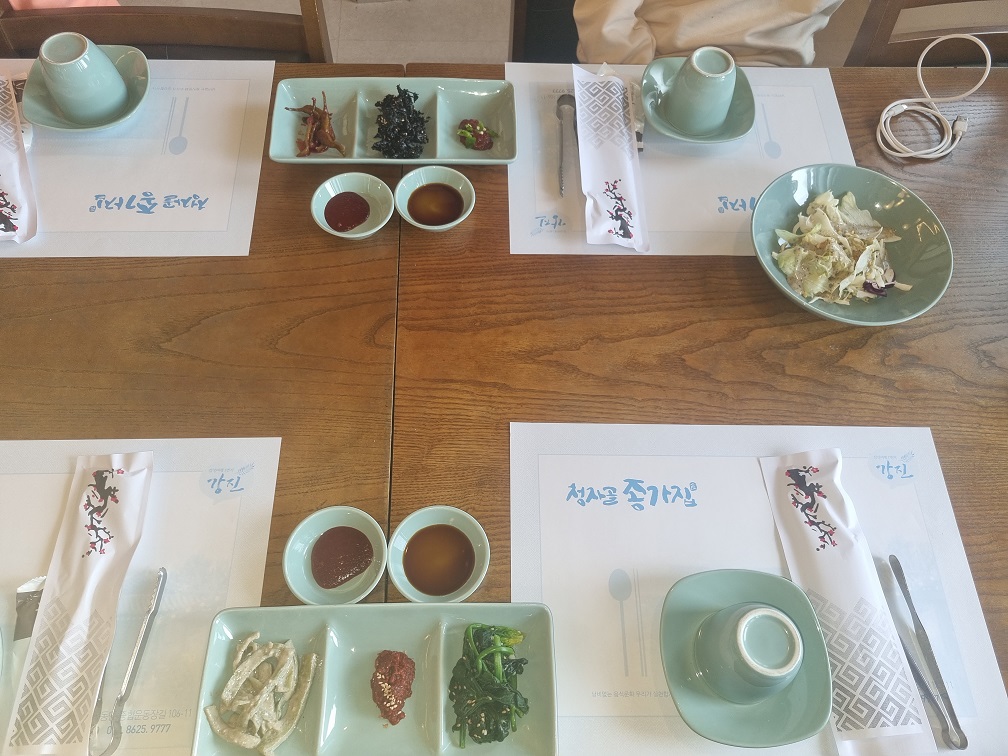 강진에는 한정식집이 많지만 외국에서 온 친구들을 위해 외관이 한국스타일인 기와집으로 꾸며진곳을 선택했다.