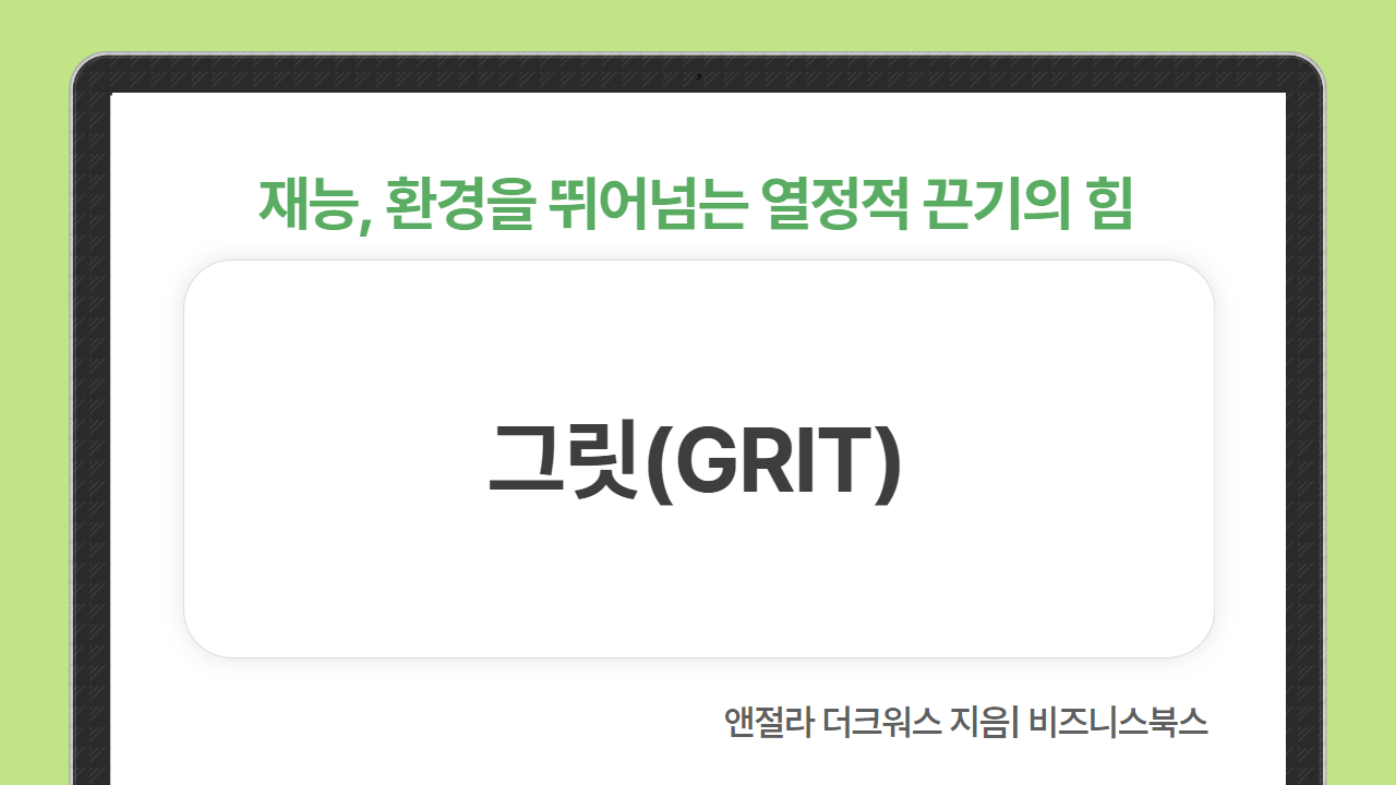 '그릿(GRIT)'은 앤절라 다크워스가 연구한 개념으로, 장기적인 목표를 향한 열정과 끈기를 의미한다.