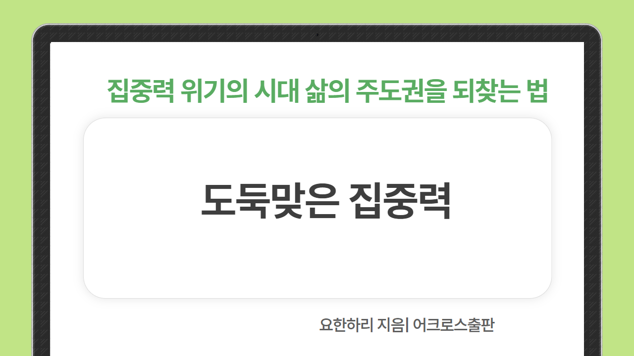 『도둑맞은 집중력(Stolen Focus)』은 현대 사회에서 점점 심각해지는 ‘집중력 상실’ 현상을 다루는 책이다. 저자 요한 하리는 직접 자신의 집중력 저하를 체험하고, 이를 극복하기 위해 다양한 실험과 전문가 인터뷰, 과학적 연구를 바탕으로 집중력 위기의 원인과 해법을 탐구한다. 이 책은 단순히 개인의 의지력 부족이 아니라, 사회 구조와 환경이 우리의 집중력을 ‘도둑질’하고 있음을 강조한다.