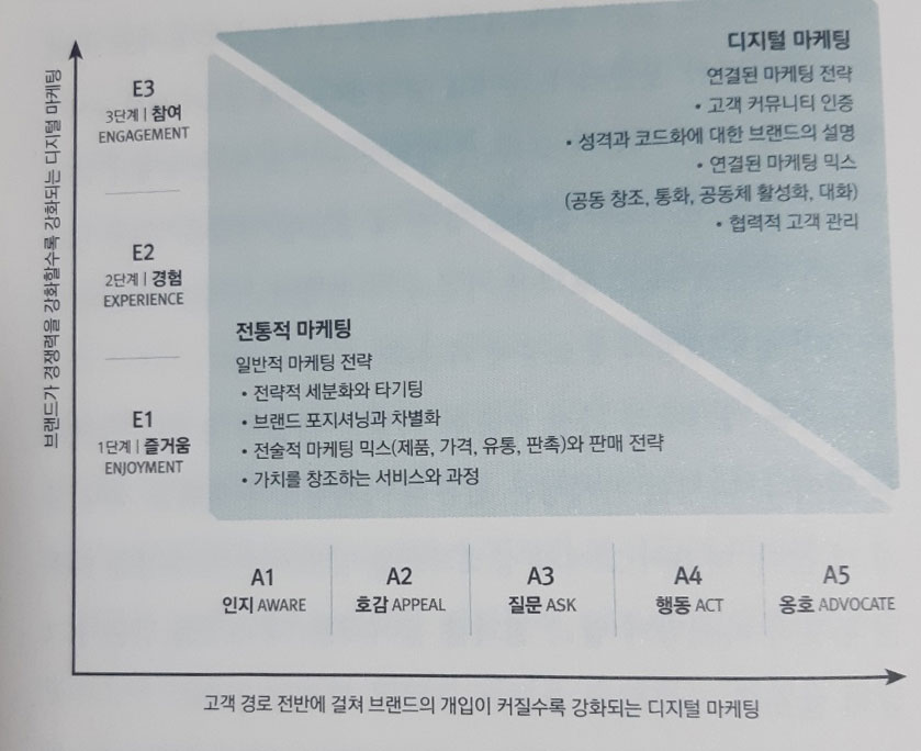 한편 디지털 시대의 고객은 커뮤니티들로 이루어진 수평적인 망속에서 사회적으로 서로 연결되어 있다. 브랜드가 마케팅 메시지를 전달하기 전에 먼저 고객의 허락을 받아야 한다.